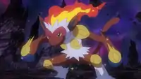 | Infernape is Ash's second known Pokémon. He was used to help break the Red Chain that binded Dialga and Palkia together, thanks to Alternate World Team Rocket. However, Dialga's temporal powers spiraled out of control and Infernape ended up devolving into Monferno, then Chimchar, and finally into an Egg. After Arceus stopped the fight between Dialga and Palkia, the temporal and spatial Pokémon repaired the distortions that their fighting had caused and granted Ash's wish in restoring the Pokémon when Chimchar's Egg turned back into Infernape, reversing the devolution for good.