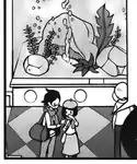 The Ambrette Aquarium is a two-story public aquarium with no entry fee. It also serves as the connecting point between Ambrette Town, Route 8 and the coastline. Several patrons walk around on the two levels, enjoying the various aquariums on the upper entrance floor. On the lower level sits a large Magikarp statue, with the exit leading out to Route 8. If the player talks to the Fisherman next to the statue, he will give the player an Old Rod.