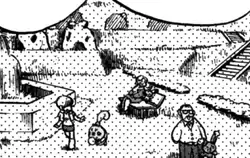 Amity Square was mentioned by Cynthia in Suffering Psyduck. She told Diamond and Pearl of an incident where a person had been walking with their Psyduck in Amity Square when it suddenly disappeared. She also remarked how a large group of Psyduck had soon after appeared on Route 210, blocking the path to Celestic Town, and suspected that these two incidents were connected. She also revealed that Mr. Backlot is the owner of Amity Square.