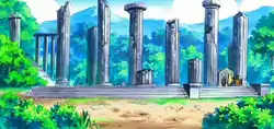 In Top-Down Training!, Paul battled Cynthia in a location called 自然公園 Nature Park, which was referred to as Amity Square in the dub. The parkland features an old ruin dedicated to the Legendary Pokémon Dialga and Palkia.