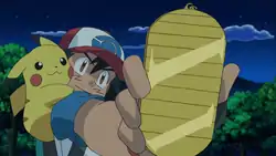 An Amulet Coin appeared in Capacia Island UFO!, where it was found by Ash. Later, when he and Team Rocket entered a UFO belonging to a group of Beheeyem, the Beheeyem told them that they lost an item looking like the Amulet Coin that was a vital part in getting the UFO to fly. Ash gave them the Amulet Coin he found, but it was not the right item. Instead, the Beheeyem sought a similar-looking item, which had been found by James earlier on.