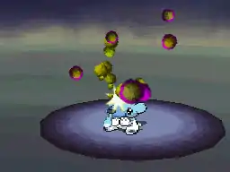Yanma Yanma's body glows white and it creates a see-through afterimage of itself. The afterimage then spins quickly and creates a silver ball in front of Yanma's body. Yanma then launches the ball at the opponent.