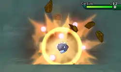 It damages nearby Pokémon. It could also boost the user's Attack, Defense, Special Attack, Special Defense, and Travel Speed. (The stat changes return to normal when you go to the next floor or step on a Wonder Tile.)*