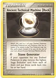 Ancient Technical Machine [Rock] (Japanese: 超古代のワザマシン岩 Very Ancient Technique Machine of Rock) is a Technical Machine card. It is part of the EX Hidden Legends expansion.