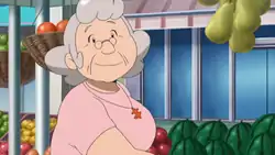 - Dubbed closed captions refer to her as an old lady in First Catch in Alola, Ketchum-Style! and as a shop lady in That's Why the Litten is a Scamp!, One Journey Ends, Another Begins..., Alolan Open House!, and The Ol' Raise and Switch!.