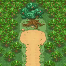 Apple Woods (Japanese: リンゴのもり Apple Forest) is an unlockable dungeon in Pokémon Mystery Dungeon: Explorers of Time and Explorers of Darkness and Pokémon Mystery Dungeon: Explorers of Sky. It has 12 floors and no boss. It can be unlocked by completing several optional missions after Team Skull joins the Guild. The player is sent there by Chatot to find Perfect Apples, as someone had secretly eaten the Guild's entire supply. When the player reaches the Perfect Apple tree, Team Skull attacks and knocks them out. Team Skull then take the glory of finding the Perfect Apples.
