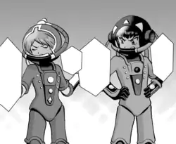 The Aqua Suit first appeared in Omega Alpha Adventure 13, under the possession of the second Shelly. When Ruby and Sapphire later prepared to ride Mega Rayquaza into space to destroy Grand Meteor Delta in Omega Alpha Adventure 21, Sapphire was given the Aqua Suit to wear for the journey. For this purpose, the suit was upgraded in several ways, including with a set of Key Stones provided by the Devon Corporation in order to Mega Evolve Rayquaza, and the Green Orb core in order to control it.