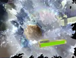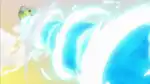 Milotic's tail becomes surrounded in a light blue aura, with water swirling around the tip, and it hits the opponent with it; or, water swirls around Milotic's tail, and it hits the opponent with it. | ||