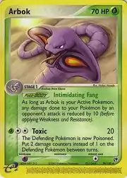 Arbok (Japanese: アーボック Arbok) is a Grass-type Stage 1 Pokémon card. It is part of the EX Sandstorm expansion.