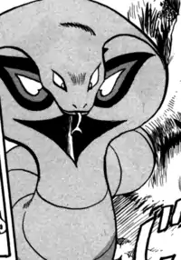 Koga and Agatha both have Arbok as important parts of their teams in Pokémon Adventures. Agatha's first appeared in Muk Raking. In Pokémon Adventures, the pattern on an Arbok's belly may give an Arbok special abilities. With the help of Agatha's smoke, Agatha's Arbok had the ability to switch between several different patterns: a standard pattern, a speed-boosting pattern, an attack-boosting pattern, and an invulnerability pattern that repels poisons. Koga's Arbok instead has only one pattern, which is a regenerative pattern that allows it to regenerate any part of its body as long as the head remains intact.