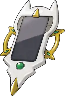An Arc Phone (Japanese: アルセウスフォン Arceus Phone) is an object owned by the player in Pokémon Legends: Arceus. It was created from the player's own mobile phone by Arceus when they are transported through the space-time rift into the Hisui region. They find it at Prelude Beach prior to the catching tutorial.