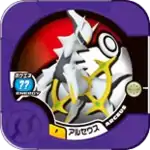 This Tretta was awarded as a prize to participants of the Pokémon Tretta Ultimate Z Series 2 Battle Score Cup ~Mew and Arceus in Your Hands!~, held from February 20, 2016 for a limited time at participating stores. Entrants faced one of two set teams (called "Patterns") and were tasked to achieve the highest score possible by defeating opposing Pokémon and having party Pokémon still able to battle at the end of Battle Mode. Players achieving the top three scores at each event were awarded a certificate. All participants were awarded either this Tretta or a Mew Tretta at random. The Battle Contest Simulator (Japanese: おためし! バトルスコアカップ Trial! Battle Score Cup) mode was made available on Tretta machines starting January 29, 2016 to allow players to practice for the event. The teams in each Pattern are detailed below.