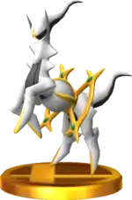 Arceus appears as a Poké Ball summon where it uses Gravity to produce a shockwave that brings opponents downwards.