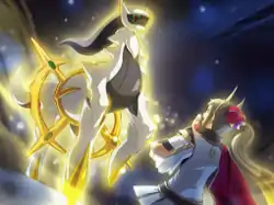 Arceus appeared in the Arceus, the One Called God specials, first appearing in JNS01. In JNS04, it and the lake guardians assisted Ash and his friends in stopping a rampaging Heatran.