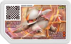 Arceus (Japanese: アルセウス Arceus) is a Grade 5 Pokémon Ga-Olé disk. It is part of the fourth Ultra Legend set.