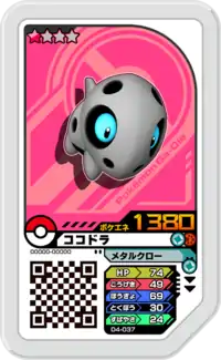Aron (Japanese: ココドラ Cokodora) is a Grade 1 Pokémon Ga-Olé disk. It is part of the fourth Dash set.
