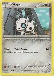 Aron (Japanese: ココドラ Cokodora) is a Metal-type Basic Pokémon card. It is part of the Dragons Exalted expansion.