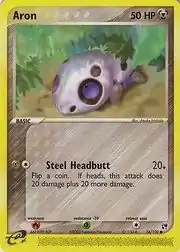 Aron (Japanese: ココドラ Cokodora) is a Metal-type Basic Pokémon card. It is part of the EX Sandstorm expansion.