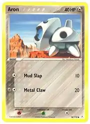 Aron (Japanese: ココドラ Cokodora) is a Metal-type Basic Pokémon card. It is part of the EX Holon Phantoms expansion.