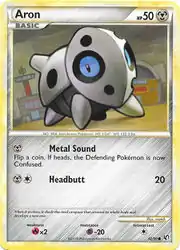 Aron (Japanese: ココドラ Cokodora) is a Metal-type Basic Pokémon card. It is part of the Undaunted expansion.