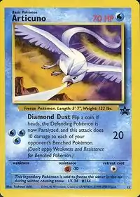 Articuno (Japanese: フリーザー Freezer) is a Water-type Basic Pokémon card. It was first released as one of the Wizards Black Star Promos.