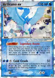 Articuno ex (Japanese: フリーザーex Freezer ex) is a Water-type Basic Pokémon-ex card. It is part of the EX FireRed & LeafGreen expansion.