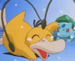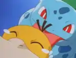 | Description: Bulbasaur uses Lick on Psyduck. Ash's exact words were "Bulbasaur, go lick Psyduck on the head!", at which Bulbasaur runs up and licks Psyduck on the head. | |||