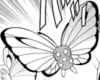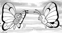 Ash's Butterfree appears in The Electric Tale of Pikachu. Like in the anime, he is one of Ash's first Pokémon, however, he is the second wild Pokémon that Ash captures in the manga, the first is Fearow.