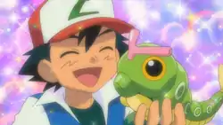 While exploring Viridian Forest early on in his journey, Ash encountered a Caterpie. He battled him with his Pikachu and managed to catch him. Caterpie accompanied Ash and Pikachu on their journey and became a trusted partner. While Ash was trying to catch a Pinsir by battling it with Caterpie, Caterpie evolved into Metapod.