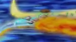 In Charizard Chills, Charizard battled Tad's Poliwrath. He blatantly refused to listen to Ash's commands, continuing to use Flamethrower despite it having no effect on Poliwrath. Tad and Poliwrath resisted all of them until Poliwrath responded with a Water Gun that nearly doused the flame on Charizard's tail. He was then encased in ice by Poliwrath's Ice Beam, much to Ash's horror. Ash managed to smash the ice encasing Charizard's head, and Tad walked away scornfully, telling Ash that they would have a rematch when he could control Charizard. Ash lit a fire and thawed Charizard out, before rubbing Charizard all over to help him regain his body heat. Pikachu pointed out that Ash's hands were rubbed raw, but Ash replied that he didn't mind, and redoubled his efforts upon seeing that Charizard's tail flame was so small. Charizard woke up in a panic and tried to attack, but he was so cold that he could not produce a flame and passed out again. Misty provided a blanket and Tracey kept the fires up while Pikachu watched the flame, but Ash himself worked throughout the entire night to help Charizard recover.