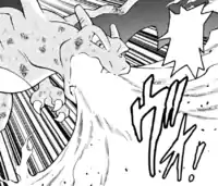 In Better Eight Than Never, Charizard battled against Clair's Dragonair in Ash's rematch. He caused the water in the Gym's pool to evaporate with his Flamethrower and Fire Spin, thus depriving Dragonair of its protection. He then caught Dragonair with Seismic Toss and used Fire Spin to create a flaming twister to wear down Dragonair's defenses before it hit the ground and was knocked out. Ash surprised Liza by sending him back for training, knowing that Charizard still had a lot to learn.