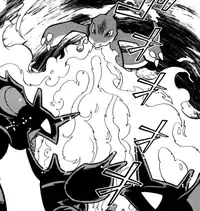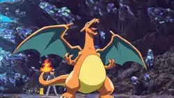 After Ash and his friends reached the Raizen Mountains and encountered Cross again, Charmeleon was used in the rematch against Cross's Incineroar. During the battle, Charmeleon evolved into Charizard and defeated Incineroar. When Marshadow became corrupted by the evil tainting it because of Cross placing the Rainbow Wing on top of the rock instead of Ash, Charizard protected Cross from an attack coming from Lycanroc when Marshadow possessed it and took part in the battle against the other Pokémon possessed by Marshadow. After Ash disappeared from existence because of a combined attack coming from Marshadow's army, Charizard and the others were saddened to see that happen. Charizard became happy when Ash was revived.