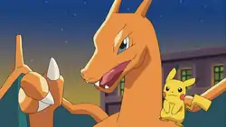 Charizard appeared one last time in Pikachu's Plan where it was used to battle Drake in the Orange League finals. Charizard, now listening to Ash perfectly, battles against Drake's Dragonite. Despite being much larger and putting up a good fight, Charizard is eventually defeated, leaving Ash with only Pikachu left to use.