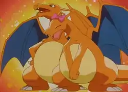 In ICYR3, Charmeleon was sent out to take on three Nidoking at Mount Tensei. Charmeleon's Flamethrower caused the Nidoking to go running. Later, it was used to battle Cross's Incineroar. During the battle, Cross's Incineroar got the upper hand but Charmeleon evolved into Charizard when it was about to lose. Using its newfound power, Charizard defeated Incineroar with Seismic Toss. Charizard then faced off against Cross's Lycanroc but the outcome was unknown.
