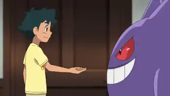 Gengar was once loyal to its previous Trainer, obeying his instructions to remain at the future site of the Cerise Laboratory. Over time, however, Gengar became resentful of its old Trainer, even to the point of attacking him upon seeing him again and only calming down once he ran away. It grew bitter and developed a hostile nature against all humans, repeatedly attacking them with its powers. After it bonded with Ash and was caught, it became friendlier, though it still seems to have a mischievous streak, such as when it showed its concern for Ash by dumping a pile of apples on top of him, and when it scared Ren and Chloe in Memories of a Warming Kindness! by phasing through a wall. In Errand Endurance!, Gengar kept scaring Eevee, Grookey, and a Geodude by repeatedly phasing through walls while moving objects with Psychic.