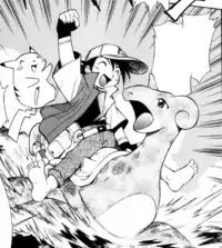 Ash caught a Lapras in The Electric Tale of Pikachu manga's chapter The Orange Islands. Pikachu found Lapras being attacked by a group of Krabby. After Ash had managed to get rid of the Krabby with his Squirtle, he captured Lapras after Pikachu had convinced it that Ash was harmless. Since then, Ash used Lapras to transport himself from Orange Island to another.