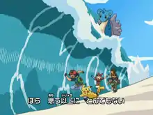 Thanks to Lapras using Ice Beam, Ash won a wave ride race in Fit to be Tide against Cissy and her Blastoise, gaining his first Orange League Badge in the process.