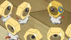 In Imitation Is the Sincerest Form of Strategy!, Meltan watched Ash and Rowlet's battle against Hau and his Decidueye. After witnessing Rowlet's victory in the next episode, a determined Meltan climbed to the top of the Manalo Stadium Pokémon Center and started calling for the other Meltan to meet up with it.