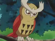 Personality-wise, Noctowl was presented as intelligent, mischievous, and cunning — although these traits weren't usually emphasized or touched upon after its debut episode. It also presents a serious side to its personality, often going to sleep with dignity, or using its hypnosis on others in order to save them, instead of for prank purposes, as was the case in Carrying On!, where it was also shown to develop a soft spot for a small Pidgey. Noctowl is very loyal to Ash because he saved it from Team Rocket, and similar to Bulbasaur, was captured in a fair contest with Pikachu. Noctowl also proved to be a very powerful Pokémon, being used as Ash's secret weapon in his battle with Morty and also performing well in the battle against Conway.