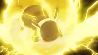 Pikachu later protected Ash from being hit by Zeraora's Plasma Fists attack and proceeded to battle with the Thunderclap Pokémon, but the battle stopped when Zeraora accidentally launched a Plasma Fists attack at the wild Pokémon and Ash jumped in to save them. He was later used to recharge the sprinkler system, which was later used to extinguish the fire caused by Team Rocket dropping a sample of Effect Spore solution.