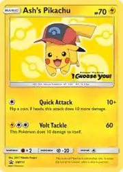 Ash's Pikachu (Japanese: サトシのピカチュウ Satoshi's Pikachu) is a Lightning-type Basic Pokémon card. It is one of the SM Black Star Promos.