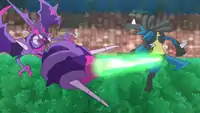 In A Full Battle Bounty!, Ash sent Naganadel out to face Professor Kukui's Lucario during their Full Battle. The battle between the two properly commenced in the next episode, where Naganadel eventually managed to defeat its powerful opponent before being recalled. Ash later sent it back out to battle Tapu Koko, who had decided to join the battle as Kukui's final Pokémon. The battle between the two Pokémon took place in the following episode, where Naganadel, despite successfully dealing some damage on the guardian deity, was eventually defeated.