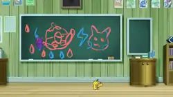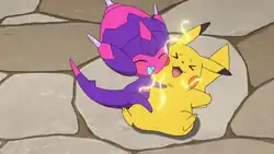 In Love at First Twirl!, Poipole recalled Pikachu's Thunderbolt after encountering a wild Chinchou, and went looking for him, eventually finding him at the Pokémon School. While Ash and his classmates were focusing on their lesson, Poipole attracted Pikachu's attention and lured him away, wanting to see Pikachu's Electric-type moves again. After Pikachu had shared an apple with it, Poipole started showing its affection towards him with constant nuzzling. Ash's Rowlet, who was looking for Pikachu, mistook this as Pikachu being in trouble and tried to attack Poipole, only for Poipole to panic and use Toxic on Rowlet, poisoning it. After Pikachu scolded Poipole, it understood its mistake and offered to help carry Rowlet. While going through Hau'oli City, the two were attacked by Team Rocket, who tried to capture them, but were saved when Ash showed up.