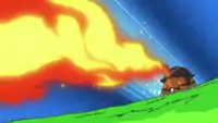 | Description: A combination of Sandstorm, Heat Wave, and Body Slam. Registeel fires a Sandstorm at Torkoal, who pushes it towards the opponent with Heat Wave, leaving the opponent trapped in a fiery tornado of sand. Torkoal then jumps to the top of the tornado and spins with the tornado to boost the power of its Body Slam attack. This was used against Registeel during Ash's first official Battle Pyramid match against Brandon. | |||