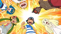 In Battling the Beast Within!, Ash and Pikachu were sent to an alternate dimension Hau'oli City that had been devastated by a Guzzlord. A Trainer named Dia and the Zeraora he befriended saved Ash and Pikachu from being devoured by the Ultra Beast. With the help of their Pokémon and the Z-Power granted by the alternate Melemele Island's Shiny Tapu Koko, Ash and Dia were able to send Guzzlord back to the world it came from.