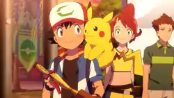 Ash appeared in ICYR1, where he took on an island trial on Poni Island. During the trial, he encountered a Totem Kommo-o and battled it. In the middle of the battle, Ash had a flashback of the day that he met Pikachu.
