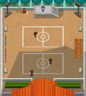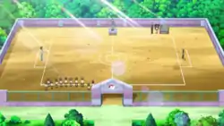 The Gym's battlefield looks like an ordinary schoolyard but is yet to be completed. However, it was finished enough for Ash and Cheren to conduct an exhibition match by the time of Ash and his friends' visit at the Gym.