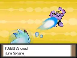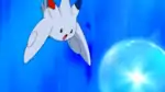 Togekiss puts its wings together and creates a light blue ball of energy. Togekiss then fires it at the opponent; or, Togekiss fires multiple light blue balls of energy from the front of its mouth at the opponent. | ||