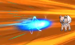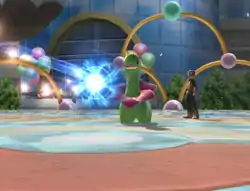 In Pokémon Rumble Blast, the user creates a blue ball that homes in on the nearest Pokémon.