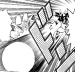 Lucario forms a ball in its hands. When the ball makes contact, it keeps going. | ||